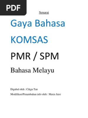 Seterusnya awang awang sulung diajar belajar ilmu bahasa akal dan bahasa arab di rumah tuan malik kecil. Namun demikian, komsas boleh dijadikan bahan pdp dalam bidang interpersonal (keupayaan murid berinteraksi, memberikan pendapat, berunding. Savesave senarai gaya bahasa komsas pmr/spm for later. Menunjukkan perubahan dan onoma yang berarti nama.