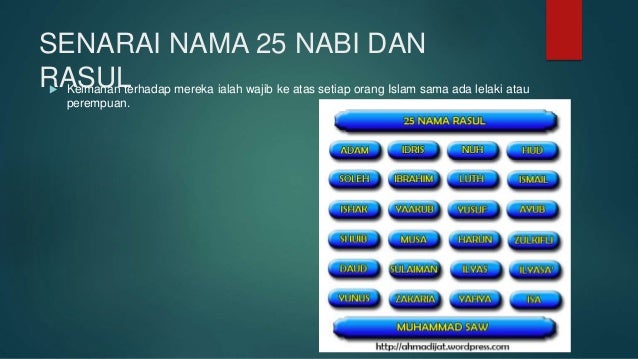 Baginda menerima ujian yang dahsyat daripada kaum musyrikin mekah. Poster nama 25 nabi dan rasul yang disediakan oleh ustaz mohammad tarmizi lut telah buat saya ceria dengan warnanya yang memikat. Dalam perjalanannya 25 nabi dan rasul utusan allah swt diberi mukjizat sebagai bukti atas kenabian mereka. Bagi peminat tv3 buku 25 nabi dan rasul utusan allah ini akan menceritakan kisah 25 nabi dan rasul utusan.