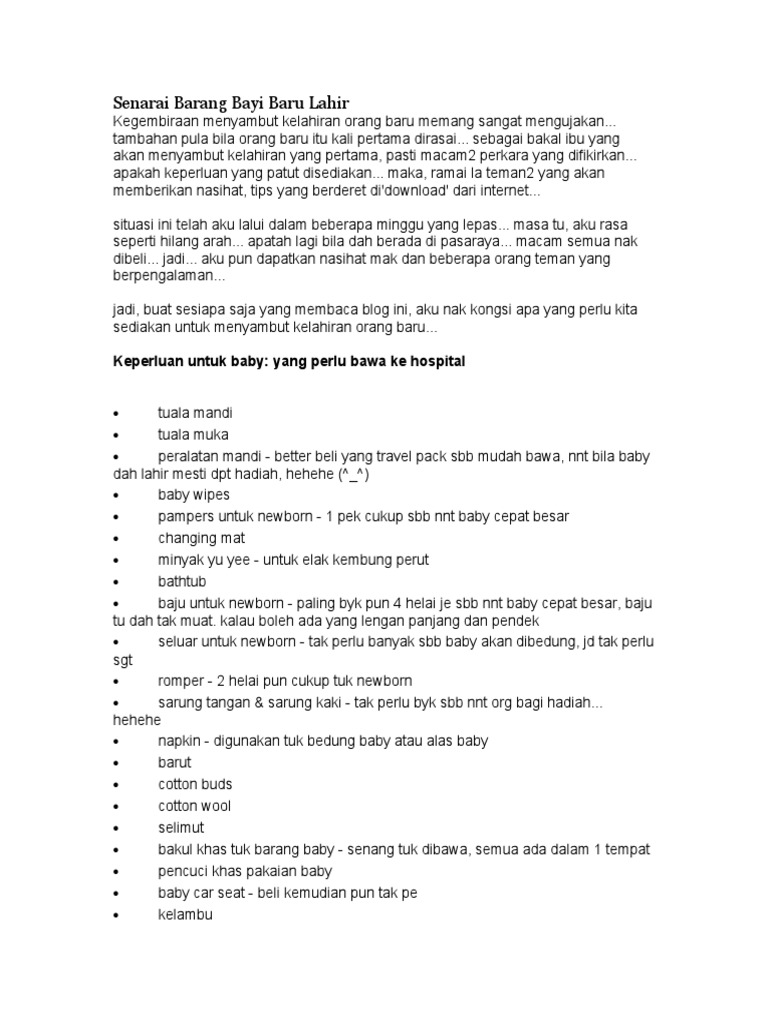 View Persediaan Senarai Barang Baby Yang Perlu Dibeli Images. 10 barang baby yang perlu disediakan, tapi ibu bapa selalu lupa. Jadi berikut adalah checklist barang baby yang perlu disediakan: